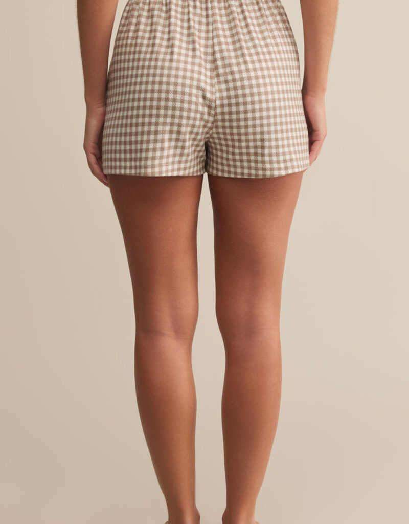 Easy does it in this relaxed high-rise short, made from ultra-soft silky jersey pajama fabric and finished with a classic gingham print. An elastic waistband keeps it comfy, whether you're relaxing or staying in.