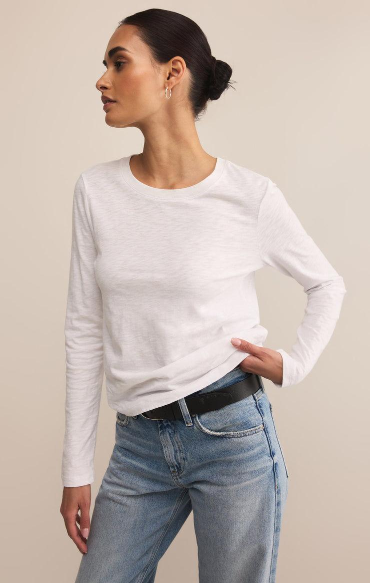 One of our favorite long sleeve tees, this easy-to-style crew neck is made of lightweight cotton slub jersey fabric for all day comfort. With its regular fit, this versatile tee offers endless styling options whether tucked in or out.
